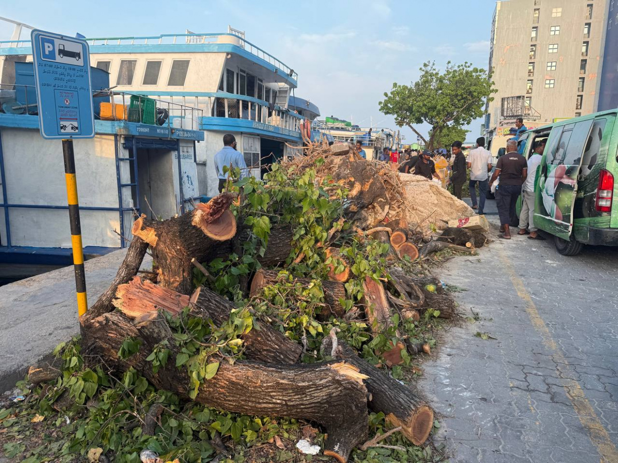 އަތޮޅު ފިހާރަ ކައިރީ ހުރި ގަހެއް ނަގާފައި ---- ސަން ފޮޓޯ