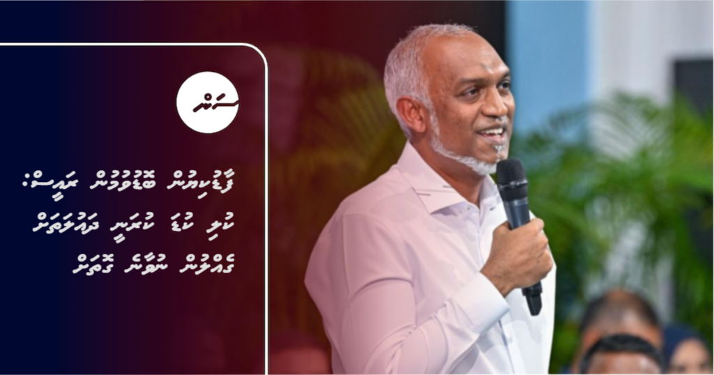 "ސަރުކާރުން ބޭރުގެ ދަރަނި. އެތެރޭގެ ދަރަނި ޕްލޭނާ އެއްގޮތަށް އެކަން ކުރުމަށް ހުރަސް އެޅޭ ގޮތަކަށް އަޅުގަނޑުމެން އެއްވެސް ކަހަލަ ލުޔެއް. ނުވަތަ ޖޫރިމަނާ މައާފް ކުރުން ކަމުގައި ވިޔަސް ނުކުރަން," ރައީސް ވިދާޅުވިއެވެ.