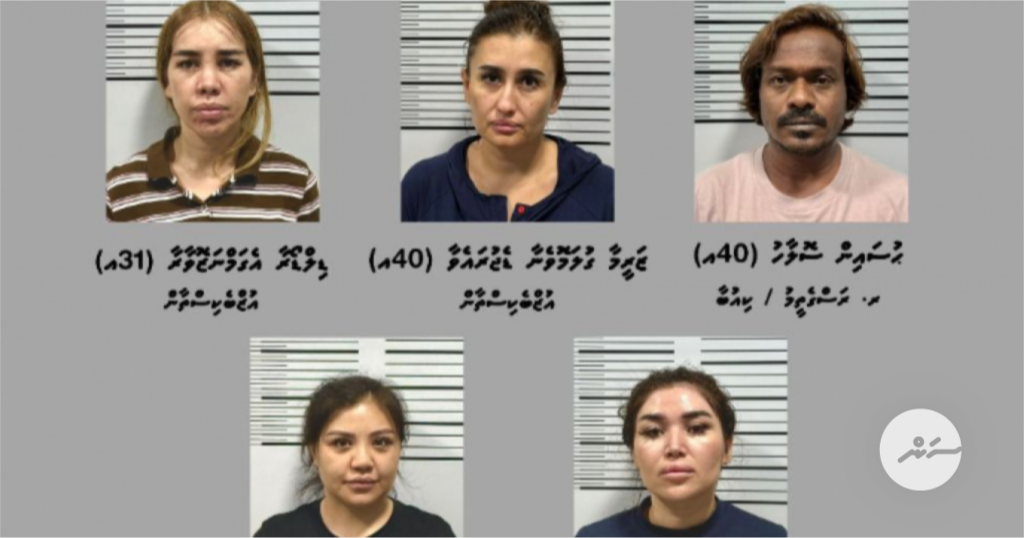 މިދިޔަ މަހުގެ 29 ގައި ފުލުހުން ހިންގި އޮޕަރޭޝަނެއްގައި ހައްޔަރުކުރީ ރ. ރަސްގެތީމު، ކިއުބާ، އުމުރުން 40 އަަހަރުގެ ޙުސައިން ސޮލާހާއި އުޒްބަކިސްތާނުގެ ހަތަރު އަންހެނުންނެވެ.