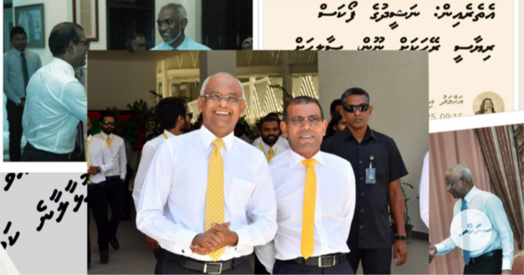 ނަޝީދާއި ޞާލިޙް ދެން އިއްޔެ އެ ވިދާޅުވީ ކުރީގެ ރައީސް އަބްދުالله ޔާމީނާ އެކު މަސައްކަތްކުރައްވަން ބޭނުންފުޅުވާ ވާހަކައެވެ. މީގެ ކުރިން އެ ދެ ރައީސުންނަށް ޔާމީނަކީ "ބޮޑު ވަގެކެވެ.", "އަނިޔާވެރިއެކެވެ.", "ރަހުމެއް ކުލުނެއް ނެތް އިންސާނެކެވެ." ޔާމީންގެ ވެރިކަން 2018 ގައި ބަދަލު ކުރެއްވިއިރު އެ ދެ ރައީސުން ކުރެއްވި ތުހުމަތުތައް ހާހުން, ދެހާހުން ވެސް ނުގުނޭނެއެވެ. ނަމަވެސް، އެފަދަ ބޭފުޅަކު ހަމަ ކުއްލިއަކަށް މި ދެ ރައީސުންނަށް ކަމު ދިޔައީއެވެ؟ ކުރެއްވިހާ ތުހުމަތުތައް ހަމަ ހުދު ކާފޫރަށްވެ ނިމުނީއެވެ؟ މިވެސް ހަމަ ގޮތެއް ތޯއެވެ؟ ރައްޔިތުން ހަމަ ގަބޫލުކުރަންވީތޯއެވެ؟