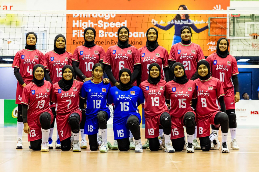 މުބާރާތުގައި ވާދަކުރާ ރާއްޖޭގެ އަންހެން ގައުމީ ވޮލީބޯޅަ ޓީމު-- ފޮޓޯ: ސަން