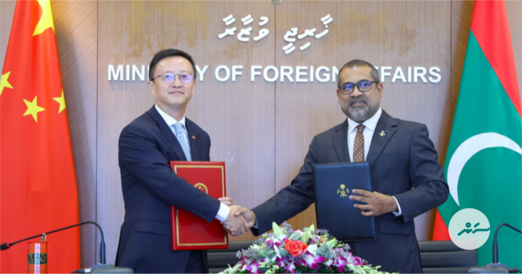 ދިވެހި ސަރުކާރާއި ޗައިނާ ސަރުކާރާ ދެމެދު ޑިވެލޮޕްމަންޓް ކޯޕަރޭޝަންގެ ދާއިރާއިން އެހީތެރިވުމުގެ އެއްބަސްވުމެއްގައި މިއަދު ސޮއިކޮށްފިއެވެ.