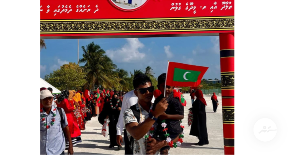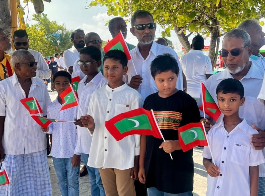 މެންދުރުފަހު 14:30 އަށް، އެންމެން ސަފަކަށް އެތުރި ތިއްބެއެވެ. ގައުމީ ހެދުމުގައެވެ. ގައުމީ ހެދުމެއް ނޫންނަމަ ގައުމީ ކުލައިގެ ހެދުމެއްގައެވެ. އެ އެންމެންގެ ކެތްތެރިކަން ކުޑަވަމުން ދިޔައީ، ރަށަށް އަންނަން ތިބި މެހެމާނުންނަށް މަރުހަބާ ކިޔާށެވެ.