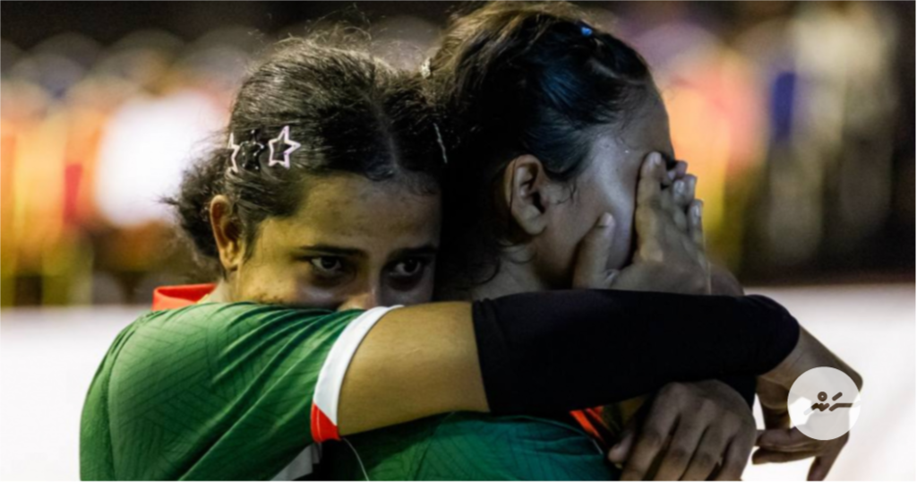 ރާއްޖޭގައި މިހާރު ކުރިއަށްދާ ވިމެންސް ކާވާ ކަޕް 2025 ގެ ބްރޮންޒް މެޑަލް މެޗުގައި އަފްގާނިސްތާނު ބަލިކޮށް ބަންގްލަދޭޝުން ފުރަތަމަ ފަހަރަށް ބައިނަލްއަޤްވާމީ މެޑަލްއެއް ހޯދައިފިއެވެ.