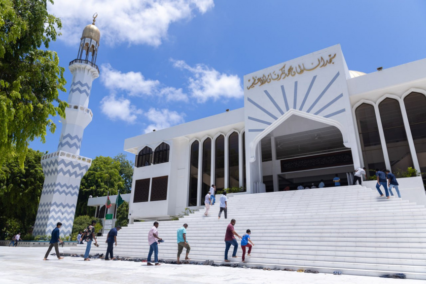 އިސްލާމީ މަރުކަޒަށް ބަޔަކު ނަމާދަށް އަރަނީ -- ފޮޓޯ/ އިސްލާމިކް މިނިސްޓްރީ