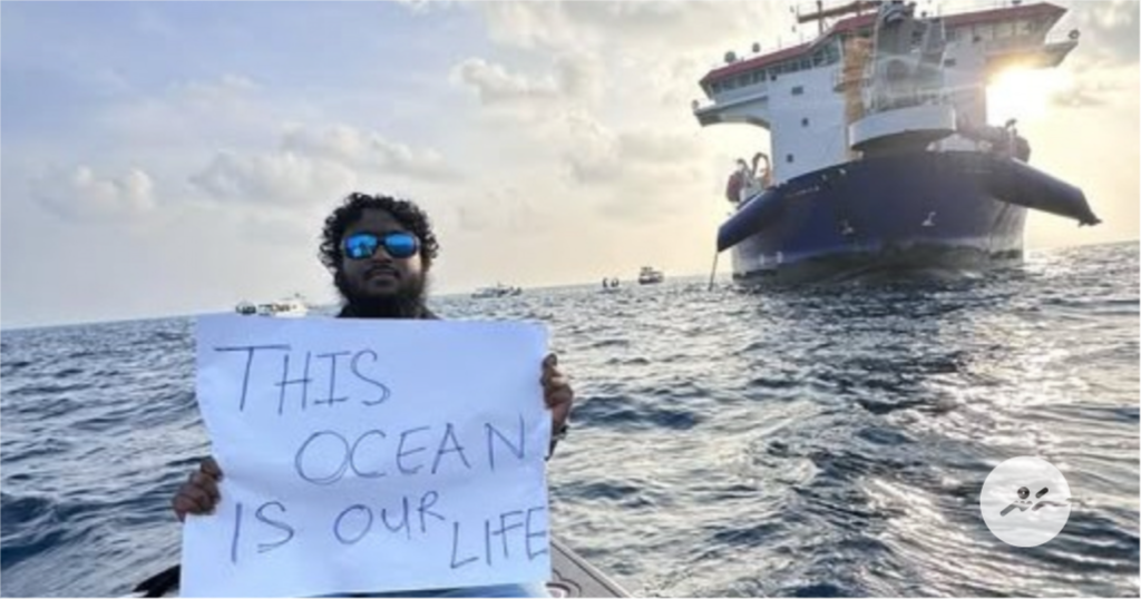 ރަސްމާލެ ހިއްކާ ޑްރެޖަރު ވަށައިގެން ކަހަލަ ގޮތަކަށް ލޯންޗުތައް މަޑުކޮށްލައިގެން ތިބިިއިރު، ޕޯސްޓަރުތައް ބޭނުންކޮށް އެ މީހުން އަންނަނީ އިހުތިޖާޖު ކުރަމުންނެވެ. އޭގެއިތުރަށް، ފަރުތައް ހަލާކު ކުރުން ހުއްޓާލުމަށް އެ އިހުތިޖާޖުގެ ބައިވެރިން އަންނަނީ ގޮވާލަމުންނެވެ.