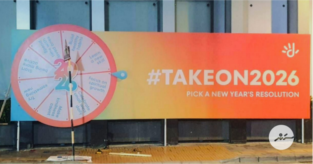 އެ ބިލްބޯޑުގައި ވަނީ، ބުރު އަނބުރާލައިގެން އައު އަހަރަށް އައު އަޒުމެއް ކަނޑައެޅުމެވެ. ކޮންމެ މީހަކަށް ވެސް މިކަން ކުރުމުގެ ފުރުސަތު އޮންނާނެ ކަމަށް ދިރާގުން ބުންޏެވެ.