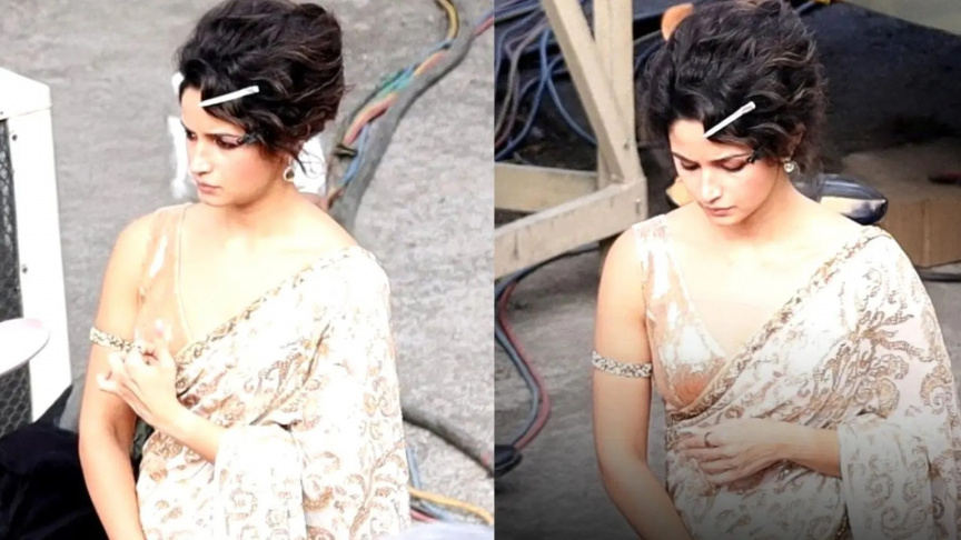 ފިލްމު "ލަވް އެންޑް ވޯ"ގެ ސެޓުގައި ބަތަލާ އާލިއާ ބަޓް--ފޮޓޯ/ޒޫމް