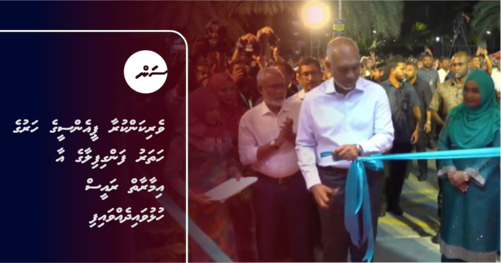 ޕީއެންސީގެ މައި އޮފީސް ހުޅުވައިދެއްވީ އެކަމަށް ޓަކައި ބޭއްވި ރަސްމިއްޔާތެއްގައި ރައީސް ޑރ. މުޙައްމަދު މުޢިއްޒެވެ.