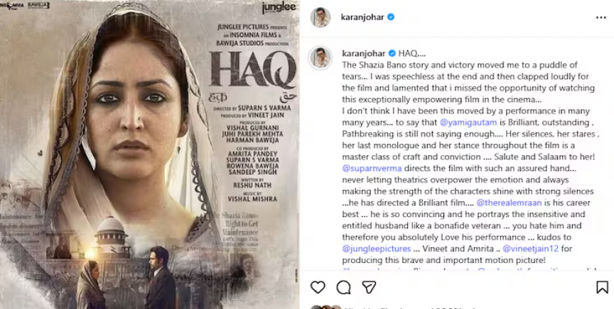 ފިލްމު 'ޙައްޤު"އާ ބެލުމަށްފަހު ކަރަން ސޯޝަލް މީޑިއާގައި ހިއްސާކުރި ޕޯސްޓް -- ފޮޓޯ/ އިންޑިއާ ޓުޑޭ