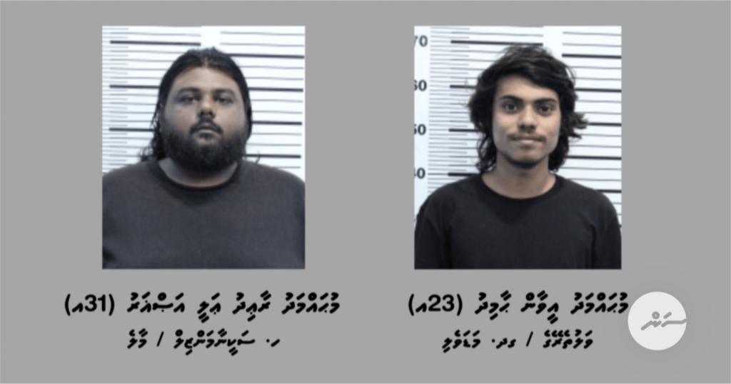 މި މަހުގެ ފަސް ވަނަ ދުވަހު, މި މައްސަލައާ ގުޅިގެން ހައްޔަރުކޮށްފައިވަނީ ގދ. މަޑަވެލި / ވަލުތެރޭގެ، މުޙައްމަދު އީވާން ޙާމިދު, 23, އާއި ހ. ސަކީނާމަންޒިލް / މާލެ، މުޙައްމަދު ރާޢިދު ޢަލީ އަޞްޣަރު, 31, އެވެ.