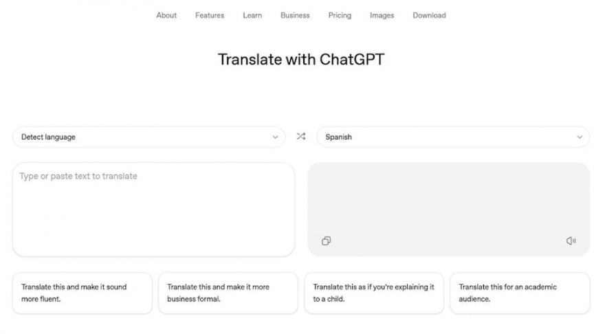 "ޓްރާންސްލޭޓް ވިތް ޗެޓްޖީޕީޓީ" ގެ ނަން ދީފައިވާ މި ހިދުމަތް ފަރުމާކޮށްފައިވަނީ ގޫގުލް ޓްރާންސްލޭޓާ ވަރަށް އެއްގޮތް ލޭއައުޓަކަށެވެ. މީގައި ލިޔުންތައް ޓައިޕްކޮށްގެން ނުވަތަ އެހެން ތަނަކުން ކޮޕީކޮށްގެން ޕޭސްޓްކޮށްގެން ވެސް ތަރުޖަމާ ކުރުމުގެ ފުރުސަތު ލިބިގެންދެއެވެ.