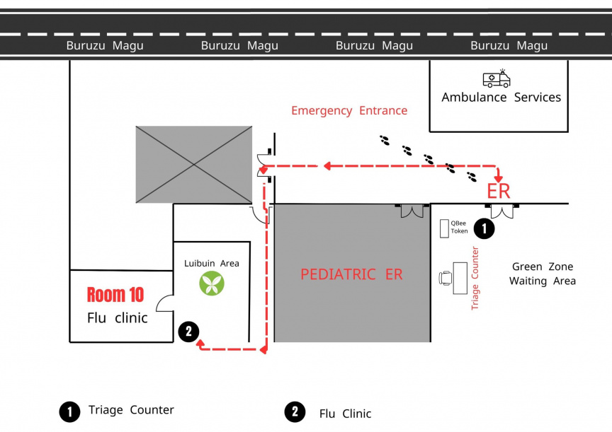 އެ ކުލިނިކުން ޚިދުމަތް ހޯދުމަށް ފުރަތަމަ ޖެހެނީ އައިޖީއެމްއެޗުގެ އީއާރު ޓްރައިޖަށް ދާށެވެ. މި ގޮތުން، ކިއުބީ ޓޯކެން ސިިސްޓަމްއިން ފުލޫ ކުލިނިކުގެ ޓޯކެން ނަންބަރެއް ނެގުމުން ފުލޫ ކްލިނިކަށް ނުވަތަ އިމަޖެންސީ ރޫމަށް ދިޔުމަށް ޓްރައޭޖްއިން އިރުޝާދު ދޭނެކަން އައިޖީއެމްއެޗުން ފާހަގަކުރިއެވެ.
