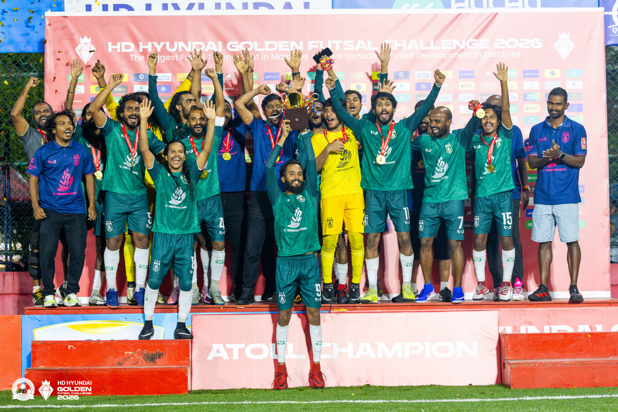 ހިއުންޑާއި ގޯލްޑަން ފުޓްސަލް ޗެލެންޖް 2026 ގެ އަތޮޅު ބުރުގެ ޗެމްޕިއަންކަަން ތ. ތިމަރަފުއްޓާއި ކ. ގާފަރު، ލ. އިސްދޫ އަދި އދ. މަހިބަދޫން ހޯދައިފިއެވެ.