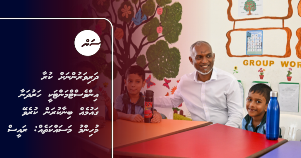 ދަރިވަރުންގެ ކުރިއެރުމަށް ކުރެވޭ އިންވެސްޓުމަންޓަކީ ހަމައެކަނި އެ ކުދިންގެ މުސްތަބަލަށްޓަކައި ކުރާ ކަމެއް ނޫން ކަމަށާއި އެއީ ހަރުދަނާ ގައުމެއް ބިނާކުރުމަށް ކުރެވޭ މުހިންމު މަސައްކަތެއް ކަމަށް ރައީސް ޑރ. މުހައްމަދު މުއިއްޒު މިއަދު ވިދާޅުވެއްޖެއެވެ.