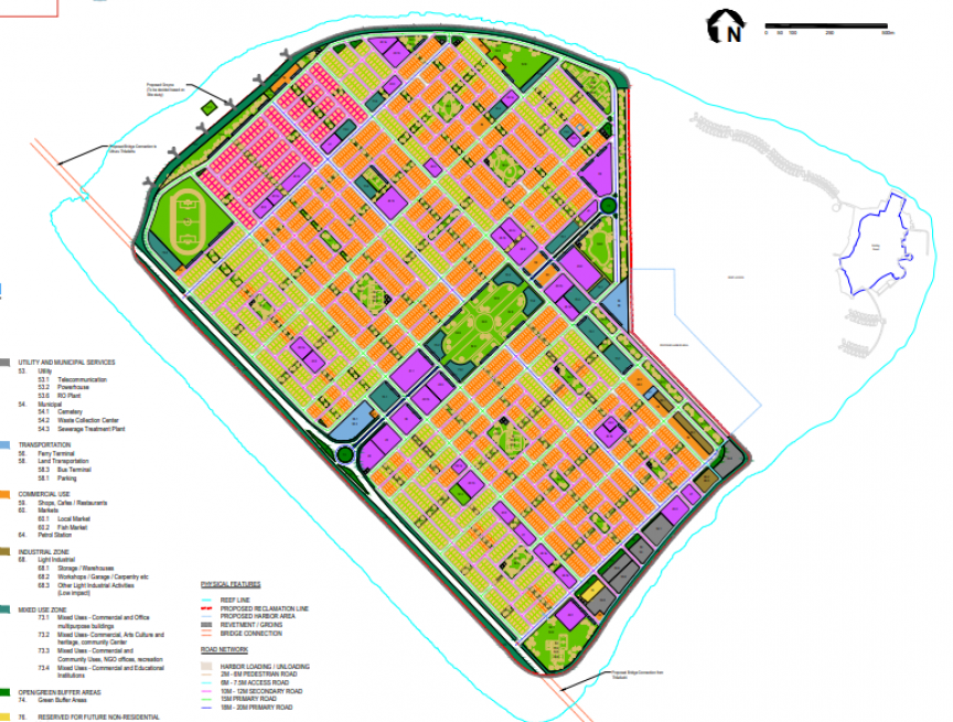 މިއަދު އެ މިނިސްޓްރީން އާންމުކުރި ލޭންޑްޔޫސް ޕްލޭނުގައި ވަނީ، އެކި ބޭނުންތަކަށް ޚާއްސަ ތަންތަން އެކި ކުލަތަކުން ފާހަގަކޮށްފައެވެ. އެގޮތުން، ކޮމާޝަލް ބޭނުންތަކާއި ކޮމިއުނިޓީ ޒޯނަށް ޚާއްސަ ސަރަހައްދުތަކާއި ސުކޫލުތަކާއި ހޮސްޕިޓަލަށް ޚާއްސަ ތަންތަން ފާހަގަކޮށްފައިވެއެވެ.