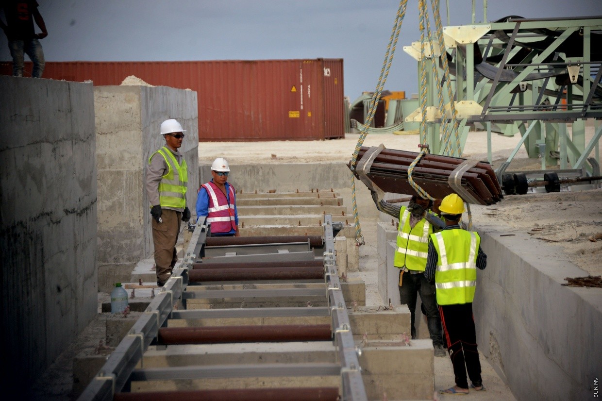ބިދޭސީ މަސައްކަތްތެރިއަކު ސައިޓެއްގައި މަސައްކަތް ކުރަނީ --- ސަން ފޮޓޯ/ ފަޔާޒު މޫސާ