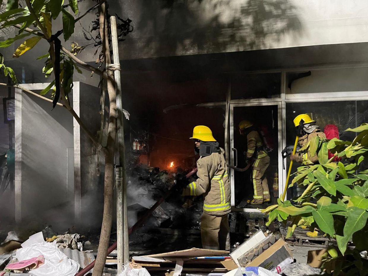 ކުނިތަކެއްގައި ރޯވެ ހިނގި އަލިފާނުގެ ހާދިސާގެ ސަބަބުން ގުދަނަށް ބޮޑެތި ގެއްލުންވެފައި --- ފޮޓޯ: އެމްއެންޑީއެފް