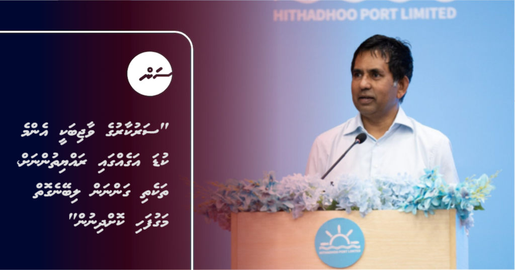 އައްޑޫ ހިތަދޫގެ ވިޔަފާރި ބަނދަރުގައި ބޮންޑެޑް ޒޯނަކާއި ޑިއުޓީ ފްރީ ޒޯނުގެ ޚިދުމަތް ގާއިމްކުރުމުގެ އެއްބަސްވުމުގައި ސޮއިކުރުމަށް ބޭއްވި ރަސްމިއްޔާތުގައި މިނިސްޓަރު ސައީދު މާލޭގެ ވިޔަފާރި ބަނދަރު، ތިލަފުއްޓަށް އަންނަ އަހަރު ބަދަލު ކުރެވޭނެކަން ފާހަގަ ކުރައްވާ ވިދާޅުވީ މިއީ ރާއްޖޭގެ ވިޔަފާރި އަށް މި ފަހަކަށް އައިސް އަންނާނެ އެންމެ ބޮޑު ކުރިއެރުން ކަމަށެވެ. އެ ކަން ކުރިއެރުމަކަށް ވަނީ ތިލަފުއްޓަށް ބަދަލުވާތީ ނޫން ކަމަށާއި، ކުރިއެރުމަކަށް ވަނީ ޖާގަ އޮތް ތަނަކަށް ބަދަލުވާތީކަމަށް ވިދާޅުވިއެވެ.