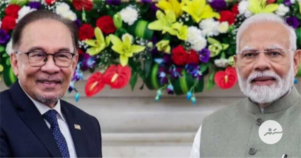 މޯދީ މެލޭޝިއާއަށް ވަޑައިގެންނެވީ މެލޭޝިއާގެ ބޮޑު ވަޒީރު އަންވަރު އިބްރާހީމްގެ ދައުވަތަކަށެވެ. އެ ދެ ގައުމުގެ ދެމެދުގައި ޚާރިޖީ ގުޅުން ގާއިމުކުރީ 1957 ވަނަ އަހަރުއެވެ.