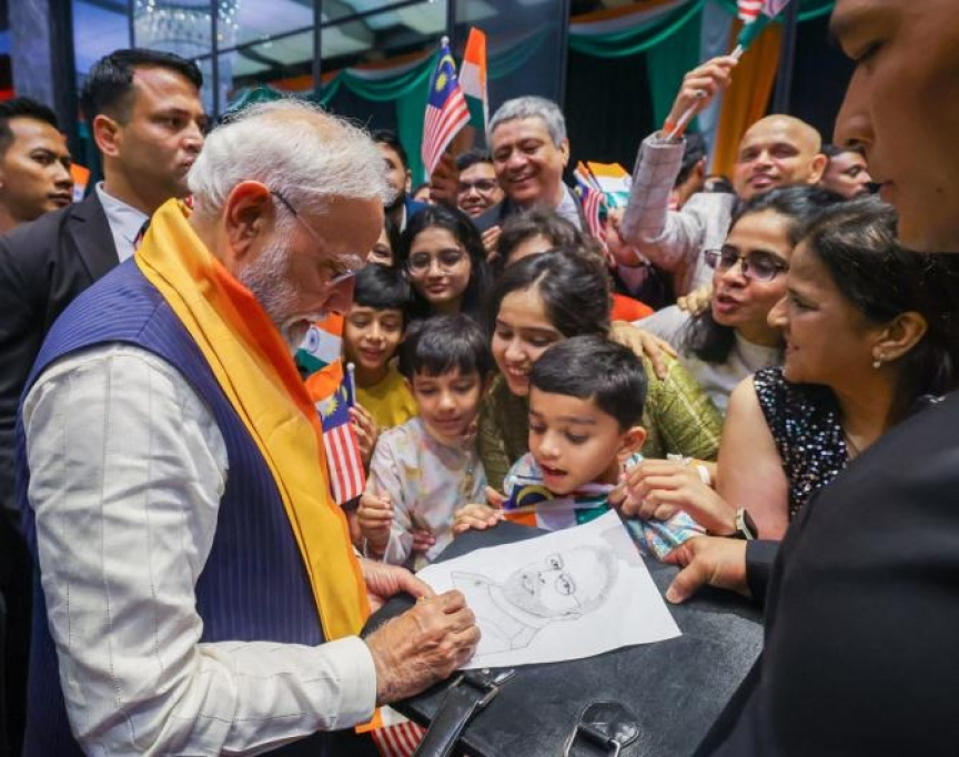 މެލޭޝިއާގައި ދިރިއުޅޭ އިންޑިއާ ރައްޔިތުންނާ މޯދީ ބައްދަލުކުރައްވަނީ. ފޮޓޯ/އޭއެންއައި