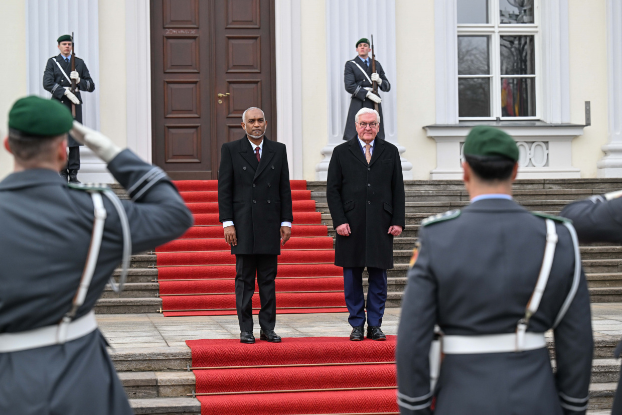 ޖަރުމަނުން ރައީސަށް ރަސްމީކޮށް މަރުހަބާ ދެންނެވުން -- ފޮޓޯ: ރައީސް އޮފީސް