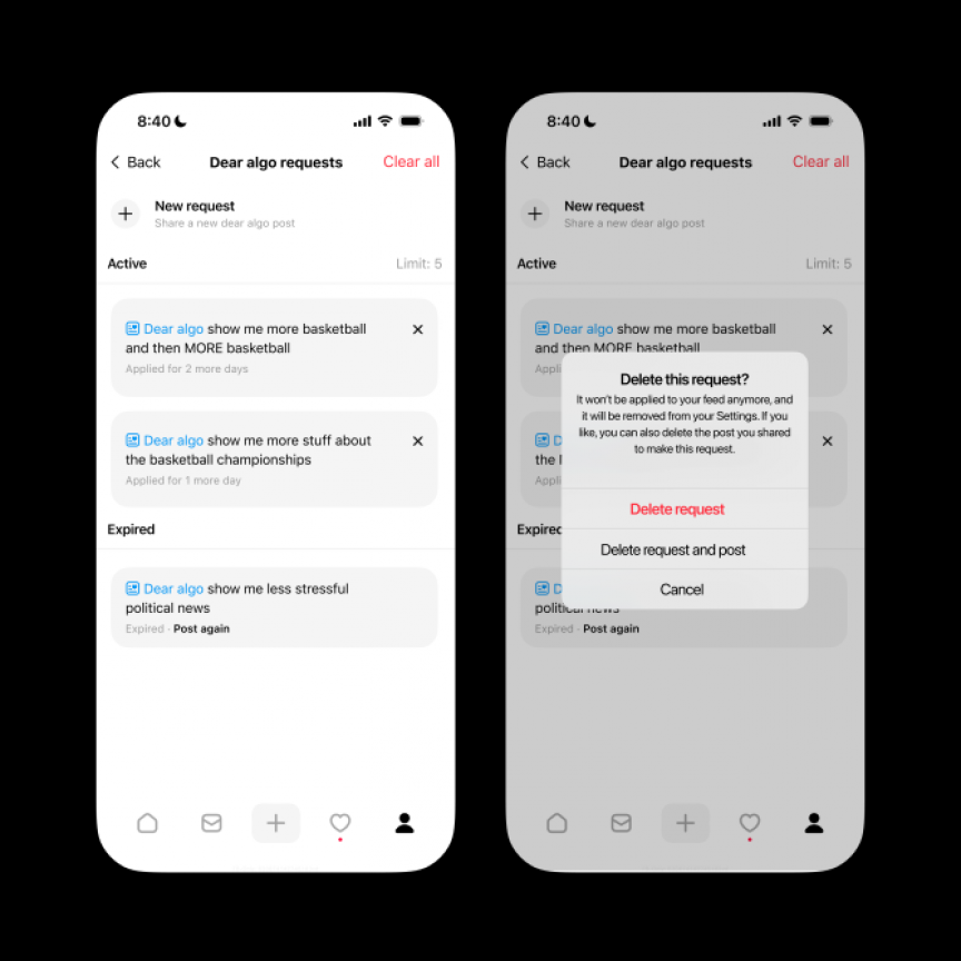 މެޓާގެ ދަށުން ހިންގާ ސޯޝަލް މީޑިއާ ޕްލެޓްފޯމް، ތްރެޑްސް ބޭނުންކުރާ ފަރާތްތަކަށް އެމީހުންގެ ފީޑުން ފެންނަ ކޮންޓެންޓް އަމިއްލައަށް ކޮންޓްރޯލް ކުރެވޭނެ އާ އޭއައި ފީޗާއެއް "ޑިއާ އަލްގޯ"ގެ ނަމުގައި ތައާރަފްކޮށްފިއެވެ.