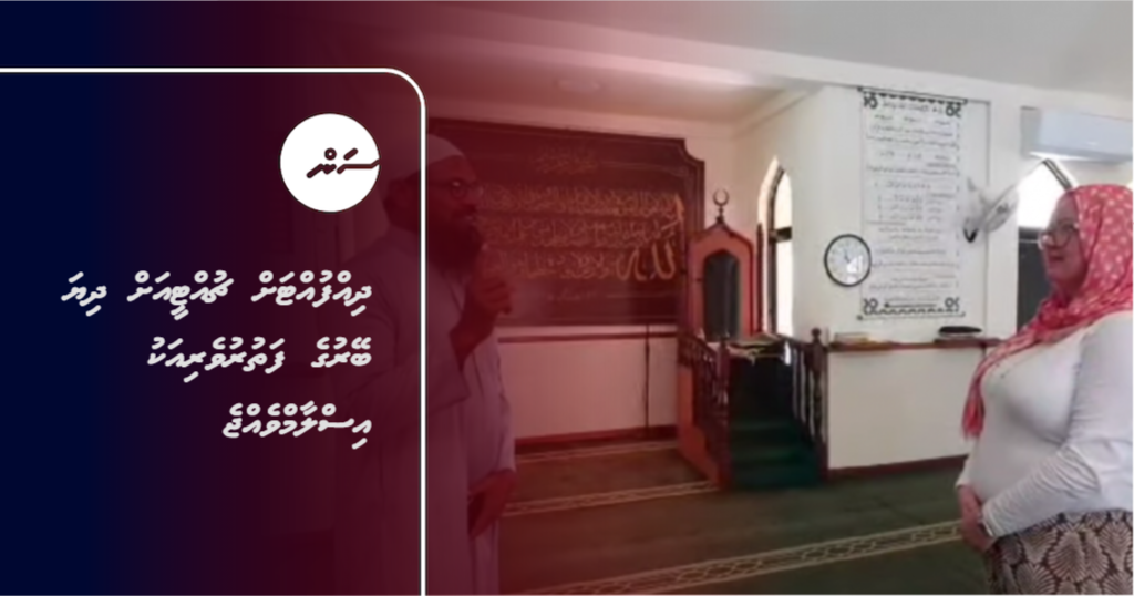 ސޯޝަލް މީޑިއާގައި އާންމުވެފައިވާ ވީޑިއޯއަކުން ފެންނަ ގޮތުގައި، އުމުރުން 49 އަހަރުގެ މި އަންހެން ފަތުރުވެރިޔާ އިސްލާމްވީ ދިއްފުށީގެ މިސްކިތެއްގެ ތެރޭގައެވެ.
