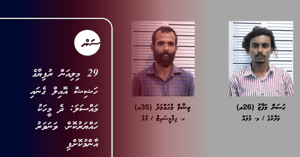 ހަޝިޝް އެތެރެކުރި މައްސަލައިގައި ހައްޔަރުކޮށްފައިވާ ދެ މީހުން --- ފޮޓޯ/ ފުލުހުން