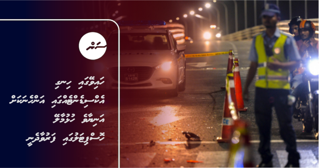 ފުލުހުން މިރޭ ހިއްސާކުރި މެސެޖެއްގައި ވަނީ ހައިވޭގައި މާލެއިން ހުޅުމާލެއަށް ދަތުރުކުރި ދެ ސައިކަލެއް ޖެހި އެކްސިޑެންޓުވެފައިވާ މައްސަލަ މިރޭ ފުލުހުންނަށް ރިޕޯޓުކޮށްފައި ވާކަަމަށެވެ.