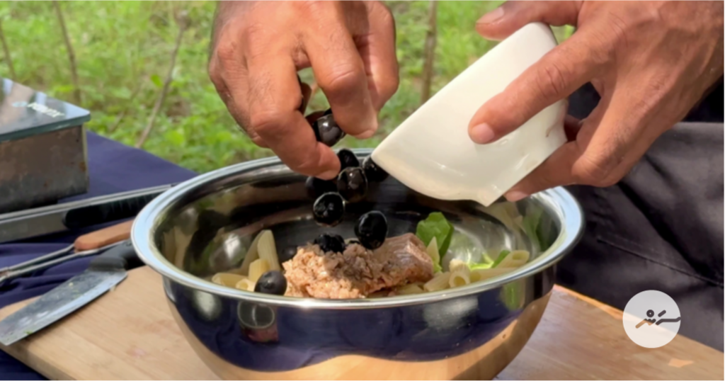 އެއަށްފަހު ބީންސްއާއި، ލެޓިއުސް ކޮށާފައި، ޗެރީ ޓޮމާޓޯ ދެފަޅިއަށް ފަޅާލާށެވެ. އަދި، ކުރިން ކޮށި ސާމާނުތައް ޕާސްތާއާ އެކު ފުން ތަށްޓެއްގެ ތެރެޔަށް އަޅާލުމަށްފަހު އެއްކޮށްލާށެވެ. ދެން އޮލިވް، ސެލެޑް ކްރީމް، މަޔޮނައިޒް އަދި އަސޭމިރުސް އެއްކޮށްލުމަށްފަހު މަޑުމަޑުން ރަނގަޅަށް މޮޑެލާށެވެ. ވަރަށް މަދު ތަކެތި ބޭނުންކޮށްގެން ކުޑަ ވަގުތުކޮޅެއްގެ ތެރޭގައި ޕާސްތާ ސެލެޑް މިހާރު ތައްޔާރުކޮށްލެވުނީއެވެ.