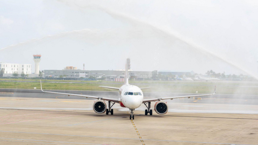 އެއާ އިންޑިއާގެ ފްލައިޓް ވީއައިއޭއިން ވޯޓާ ސެލިއުޓް ދެނީ -- ފޮޓޯ: އެމްއޭސީއެލް