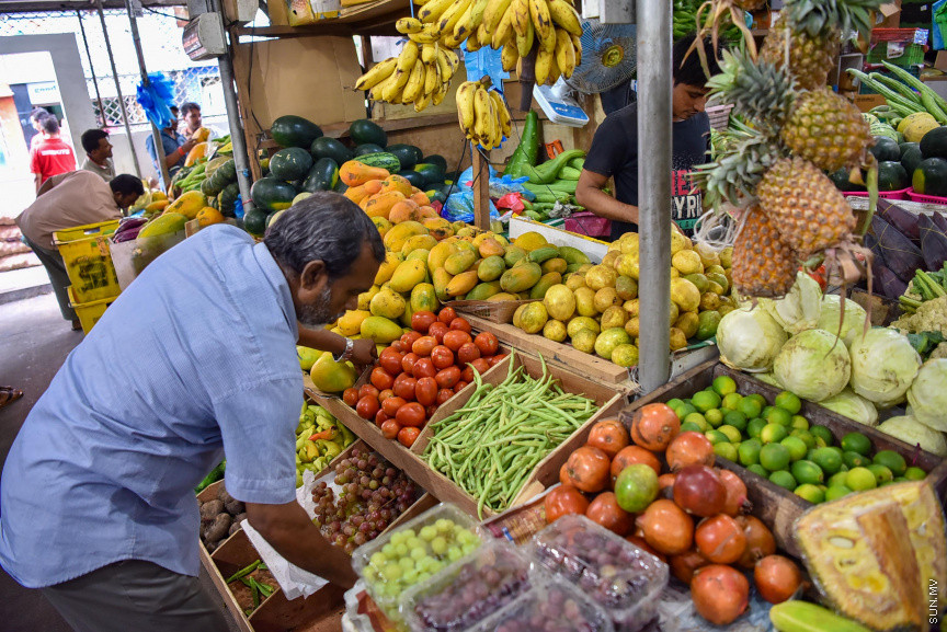 މާރުކޭޓުގައި މޭވާއާއި ތަރުކާރީ ވިއްކަން އަތުރާފައި --- ސަން ފޮޓޯ/ މުހައްމަދު އަފްރާހު