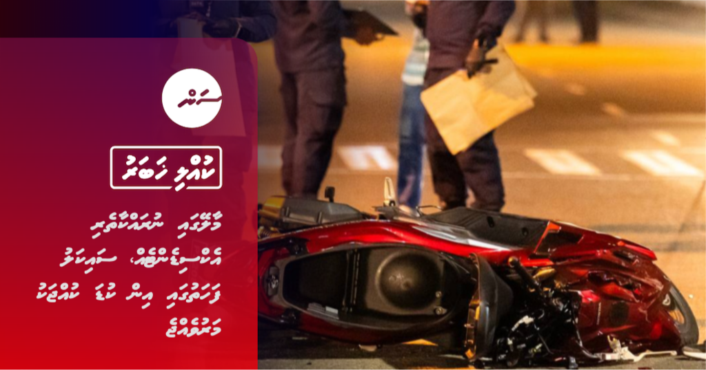 ފުލުހުން މިއަދު ބުނީ ބޮޑުތަކުރުފާނުމަގު, ޓްރެފިކް ލައިޓް ކައިރިން ބާރު ސްޕީޑުގައި ދުއްވާފައިދިޔަ ސައިކަލެއް ކޮންޓްރޯލު ނުވެގެންގޮސް އެ މަހުގެ ޕޭވްމަންޓް މައްޗަށް އަރައި ރޭ ދަންވަރު 1:39 ކަންހާއިރު އެކްސިޑެންޓެއް ވެފައިވާ ކަމަށެވެ.