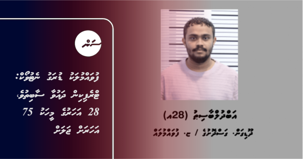 ފުވައްމުލަކުގައި މަސްތުވާތަކެތީގެ ވިޔަފާރިކުރާ ނެޓްވޯކްތައް ހުއްޓުވުމަށް ފުލުހުން ކުރި މަސައްކަތުގެ ތެރެއިން ހައްޔަރުކުރި މީހަކު، މަސްތުވާތަކެތި ޓްރެފިކްކުރުމުގެ ކުށުގައި 75 އަހަރަށް ޖަލަށްލާން ކްރިމިނަލް ކޯޓުން އިއްޔެ ހުކުމްކޮށްފިއެވެ،
