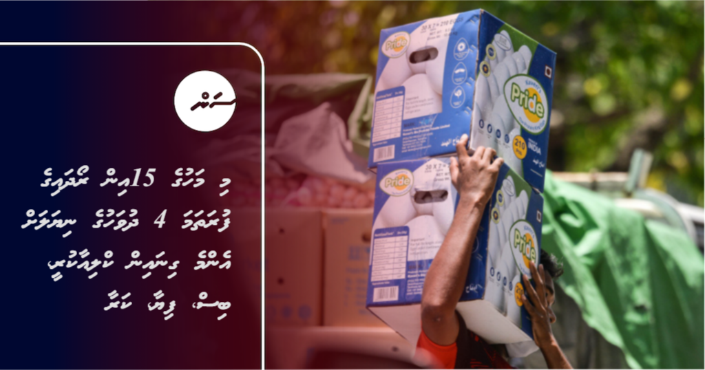 އެމްޕީއެލްއިން ހާމަކޮށްފައިވާ ތަފާސްހިސާބުތަކަށް ބަލާއިރު މި މަހުގެ 15 އިން 21 އަށް މާލޭގެ ބަނދަރުން ޖުމްލަ 29,322 ޓަނުގެ މުދާ ވަނީ ކްލިއާކޮށްފައެވެ. މީގެ ތެރެއިން 26,469.21 ފްރައިޓް ޓަނަކީ ކޮންޓޭނަރު އުފުލާ ބޯޓުފަހަރުން ގެނައި މުދަލެވެ. އަދި ބާކީ 2,852.78 ފްރައިޓް ޓަނަކީ އާންމު މުދާ އުފުލާ ބޯޓުފަހަރުން ގެނައި މުދަލެވެ.