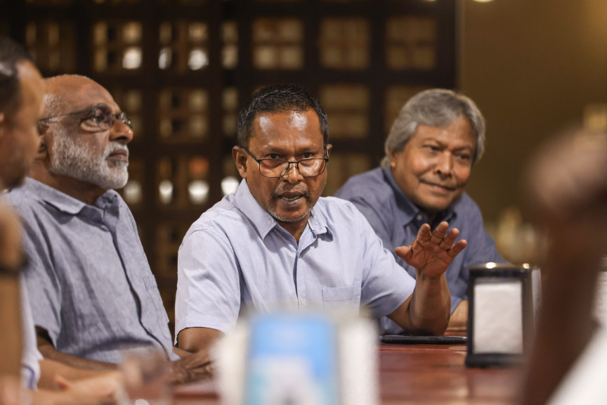 ދެ އިންތިޚާބު އެއްކޮށްލުމުގައި ހުރި ކަންބޮޑުވުންތަކާ ގުޅިގެން ކުރީގެ ނައިބުރައީސް ފައިސަލް ނަސީމް ރޭ ބޭއްވެވި ޚާއްސަ ޕެނަލް ޑިސްކަޝަންގައި -- ސަން ފޮޓޯ/ މުހައްމަދު އަފްވާން