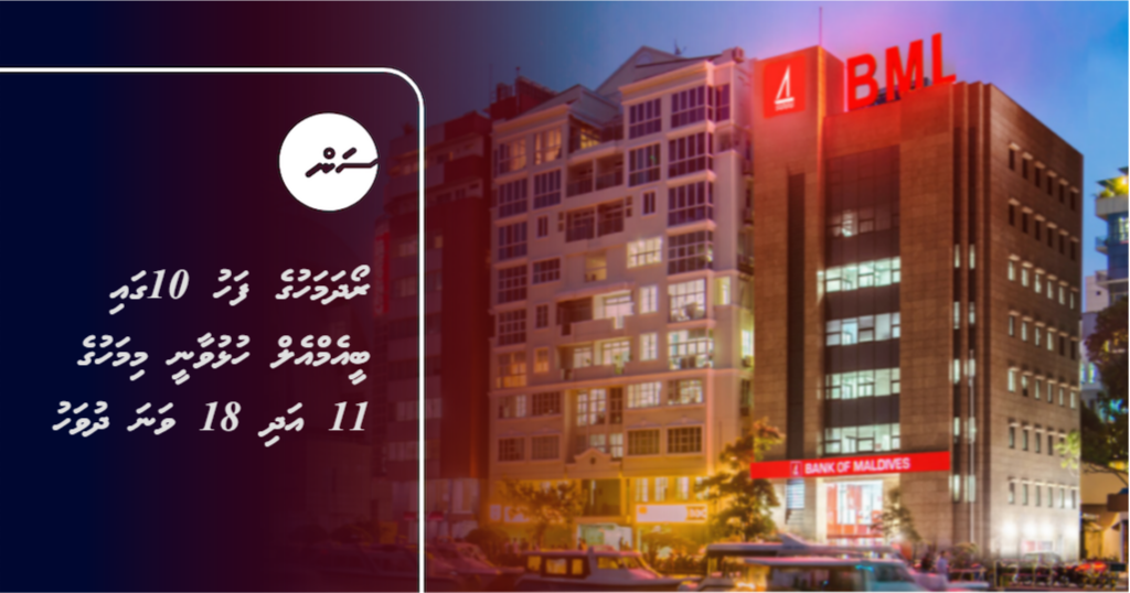 މި ރޯދަމަހުގެ ފަހު 10 ގައި ބޭންކް އޮފް މޯލްޑިވްސް (ބީއެމްއެލް) އިން ޚިދުމަތް ދޭނެ ދުވަސްތައް މިއަދު އިއުލާނުކޮށްފިއެވެ.