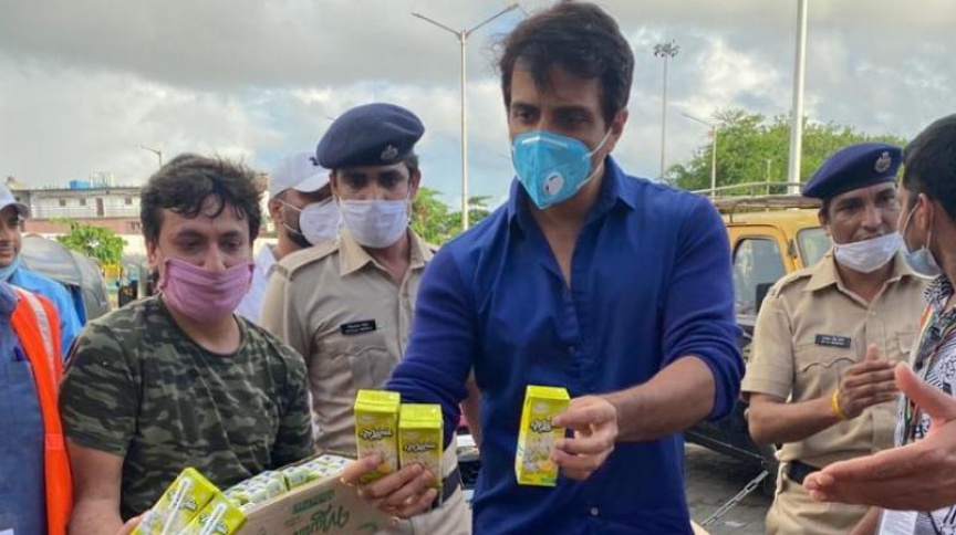 ފިލްމީ ތަރި ސޯނޫ އެހީތެރިކަން ބޭނުންވެފައިވާ ބަޔަކަށް އެހީ ފޯރުކޮށްދެނީ--ފޮޓޯ/އިންޑިއަންއެކްސްޕްރެސް