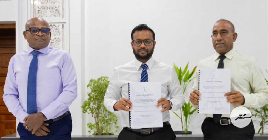 މަޑަވެލީގެ ބިން ހިއްކުމާއި ގޮނޑުދޮށް ހިމާޔަތްކުރުމުގެ މަޝްރޫއުގައި ސޮއިކުރުން --- ފޮޓޯ/ އެމްޓީސީސީ