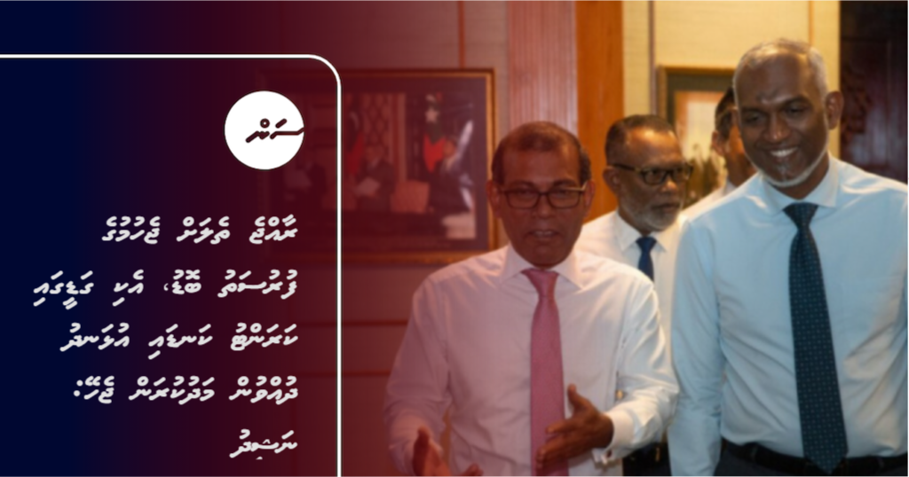 އެއާއެކު ނަޝީދު ވަނީ، މި ވަގުތު ރާއްޖޭން އަޅަން ޖެހޭ ކަމަށް އެ މަނިކުފާނު ދެކެވަޑައިގަންނަވާ ބައެއް ފިޔަވަޅުތައް ފާހަގަކުރައްވައިފައެވެ. އޭގެ ތެރޭގައި، ރާއްޖޭގެ ޕްރައިވެޓް ސެކްޓަރަށް ތެޔޮ ރައްކާކުރެވޭ މިންވަރު ދެނެގަތުމާއި، ކަރަންޓު ކަނޑާ ގަޑިގަޑި ކަނޑައެޅުން ހިމެނެއެވެ.