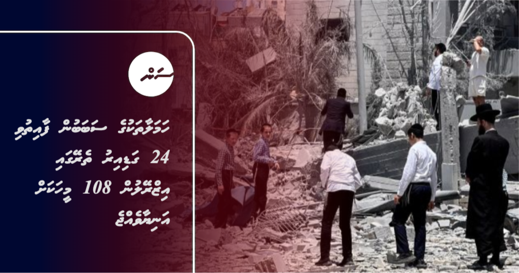 އީރާނާއި ލުބުނާނުން ދެމުންގެންދާ ހަމަލާތަކާ ގުޅިގެން ފާއިތުވި 24 ގަޑިއިރުގެ ތެރޭގައި އިޒްރޭލުގެ 108 މީހަކަށް އަނިޔާވެ ހޮސްޕިޓަލަށް ގެންގޮސްފައިވާ ކަމަށް އެ ގައުމުގެ ހެލްތު މިނިސްޓްރީން ހާމަކޮށްފިއެވެ.