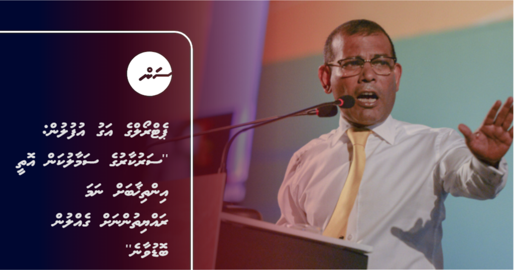 "ސަރުކާރުގެ ސަމާލުކަން އިންތިޚާބަށް އަމާޒުވެއްޖެ ނަމަ ރައްޔިތުންނަށް ލިބޭނެ ގެއްލުން ބޮޑުވާނެ،" ނަޝީދު ލިޔުއްވާފައިވެއެވެ.