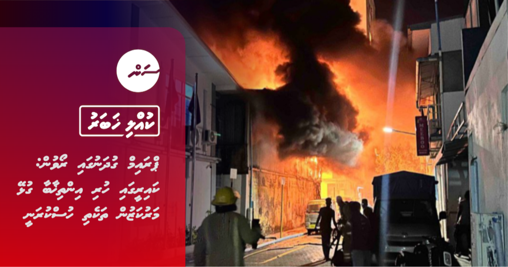 އެމްއެންޑީއެފުން ބުނީ، މ. ތޮޢިބާ މިސްކިތް ކައިރީގައި ހުރި ގުދަނެއްގައި އަލިފާން ރޯވެގެން އެމްއެންޑީއެފްގެ ފަޔާ އެންޑް ރެސްކިއު ސާވިސްއިން ހަރަކާތްތެރިވަމުން އަންނަ ކަމަށެވެ.