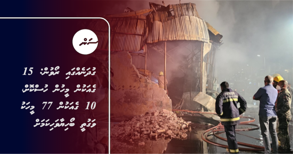 ތޯއިބާ މިސްކިތް ކައިރީ ހުރި ގުދަނެއްގައި ރޭ ރޯވި ސަރަހައްދުގައި ހުރި 15 ގެއަކުން މީހުން ހުސްކުރި ކަމަށާއި އޭގެތެރެއިން 77 މީހުންނަށް ވަގުތީ ބޯހިޔާވަހިކަން ދީފައިވާ ކަމަށް ނެޝަނަލް ޑިޒާސްޓާ މެނޭޖުމަންޓް އޮތޯރިޓީން މިއަދު ބުނެފިއެވެ.