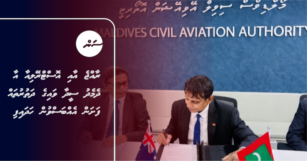 ދިވެހިރާއްޖެއާއި އޮސްޓްރޭލިއާއާ ދެމެދު ވައިގެ ދަތުރުފަތުރުގެ ގުޅުން ބަދަހިކުރުމުގެ ގޮތުން، ދެ ގައުމުގެ އޭވިއޭޝަން އޮތޯރިޓީތަކުގެ މެދުގައި މުހިންމު އެއްބަސްވުމެއްގައި މިއަދު ސޮއިކޮށްފިއެވެ.