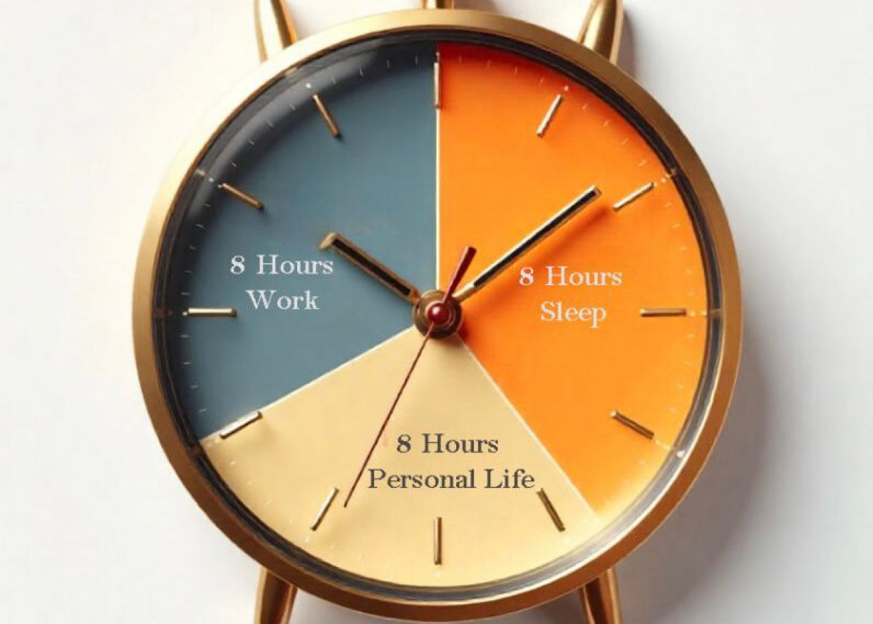 މިއީ ތިބާގެ ވަޒީފާ ނުވަތަ އާމްދަނީ ހޯދުމަށް ކުރާ މަސައްކަތުގެ ވަގުތެވެ. މި 8 ގަޑިއިރުގައި ކުރާ މަސައްކަތަކީ ތިބާގެ މުސްތަގުބަލު ބިނާކުރާ ބިންގަލެވެ. މުހިންމީ ހަމައެކަނި ގިނަ ވަގުތު މަސައްކަތުގައި ހޭދަކުރުމެއް ނޫނެވެ. ނަމަވެސް، އެ ވަގުތުގެ ތެރޭގައި "ކޮލިޓީ" މަސައްކަތެއް ކުރުމެވެ. ފަރުވާތެރިކަމާއެކު، އަމާޒެއް އޮވެގެން ކުރާ މަސައްކަތަކީ ތިބާއަށް މާލީ މިނިވަންކަމާއި ހިތްހަމަޖެހުން ގެނެސްދޭނެ ކަމެކެވެ.