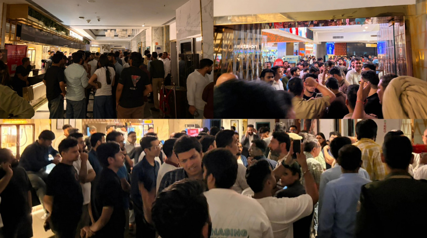 "ދުރަންދަރު: ދަ ރިވެންޖް"ގެ ޕެއިޑް ޕްރީމިއަ ޝޯތައް ބަލާލަން ބަޔަކު މީހުން ސިނަމާ ހޯލްގެ ބޭރުގައި ކިއު ހަދާފައި--ފޮޓޯ/ހިންދުންސްތާންޓައިމްސް