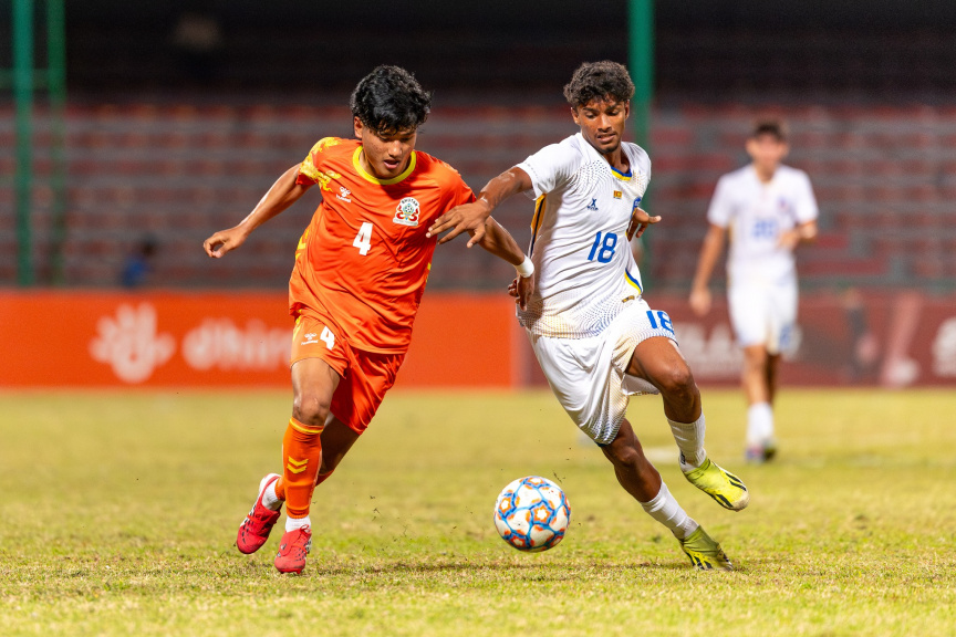 ސާފް 20 އަހަރުންދަށުގެ ފުޓުބޯޅަ މުބާރާތުގައި ބޫޓާނާއި ސްރީ ލަންކާ ބައްދަލުކުރި މެޗުގެ ތެރެއިން-- ފޮޓޯ: ސާފް