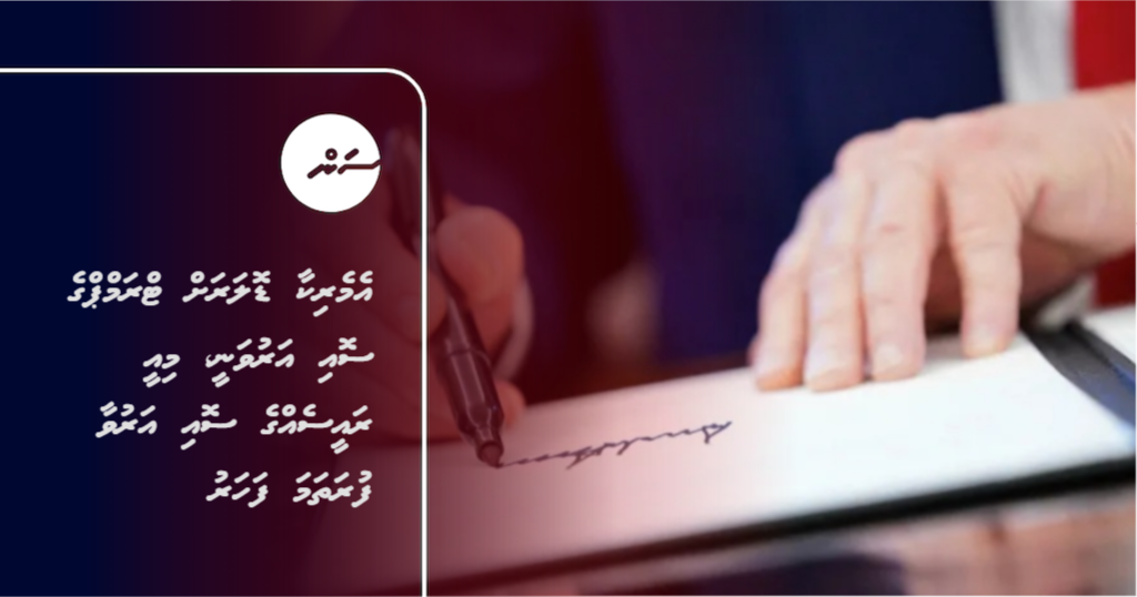 މިއީ އެމެރިކާގެ ރައީސެއްގެ ސޮއި ޑޮލަރުގައި ޖަހާ ފުރަތަމަ ފަހަރު ކަމަށްވެސް އެ ޑިޕާޓްމަންޓުން ބުނެއެވެ.